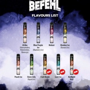 | Geschmack | Blue Purple ICE, Africa, Peach ICE, Steve Jobs, Monkey ICE, Meloni, Fruit Bomb, Lush Ice, Redlight Kiwi |